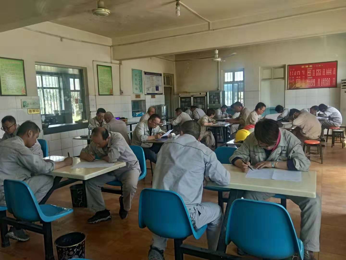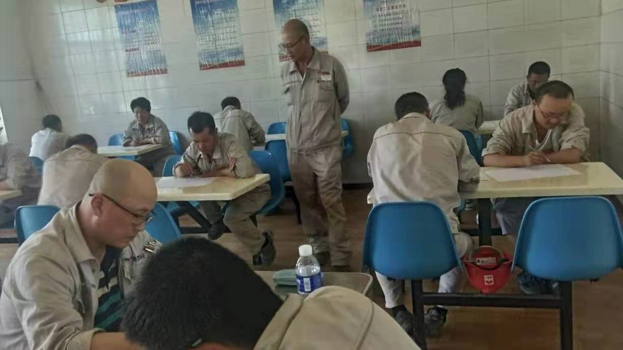 考試分為兩場進行,考場分別設(shè)在公司餐廳及會議室,此次考試以近期培訓的《危害生產(chǎn)安全刑事案件兩高司法解釋》、《危險性作業(yè)管理要求》、《電石、水泥系統(tǒng)較大風險作業(yè)安全管控措施》及管理人員應(yīng)知應(yīng)會知識為主,考試分為A、B卷組織進行,現(xiàn)場為避免抄襲現(xiàn)象,組織將手機集中保管,分離對坐。