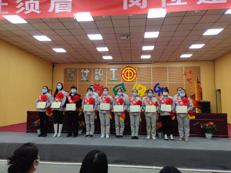 最后,女工主任宣讀受表彰的先進(jìn)單位及先進(jìn)個(gè)人,其中資源再生公司電石系統(tǒng)中控操作崗位榮獲“巾幗文明示范崗”稱號,生料、電石一裝置等四位女職工榮獲“三八紅旗手”、“優(yōu)秀女職工”稱號。工會主席等人對受表彰人員頒發(fā)榮譽(yù)證書及禮品。