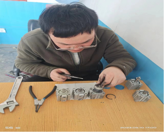 就拿水泥包裝機(jī)的小氣缸來(lái)說(shuō),它的作用就是控制包裝嘴在完成水泥包裝以后能順利的將水泥袋從包裝嘴上掉落!它就是典型的易損件,因?yàn)樵谒喟b現(xiàn)場(chǎng),有一部分的灰塵是收塵器收不掉的,而包裝機(jī)屬于經(jīng)常運(yùn)轉(zhuǎn)設(shè)備,時(shí)間久了,小氣缸由于暴露在灰塵中,會(huì)有一部分灰塵通過(guò)電磁閥連接的氣道而進(jìn)入小氣缸內(nèi)部,造成內(nèi)部活動(dòng)件的卡死,如果活動(dòng)件卡死不動(dòng)作,小氣缸就會(huì)壞掉,因此需要我們經(jīng)常維護(hù)保養(yǎng)和更換!近期,班組人員積極響應(yīng)公司的廢舊利用理念,將一些不好用和損壞的小氣缸收集一起,進(jìn)行拆卸清理,重新再組裝,經(jīng)過(guò)反復(fù)的試驗(yàn),變成小氣缸的備件,這樣的一個(gè)小小舉動(dòng),其實(shí)為公司節(jié)約了一小部分成本,如果長(zhǎng)期這樣,大家一塊行動(dòng)起來(lái),每年為公司節(jié)約的成本是顯著的,也是讓人內(nèi)心激動(dòng)的。