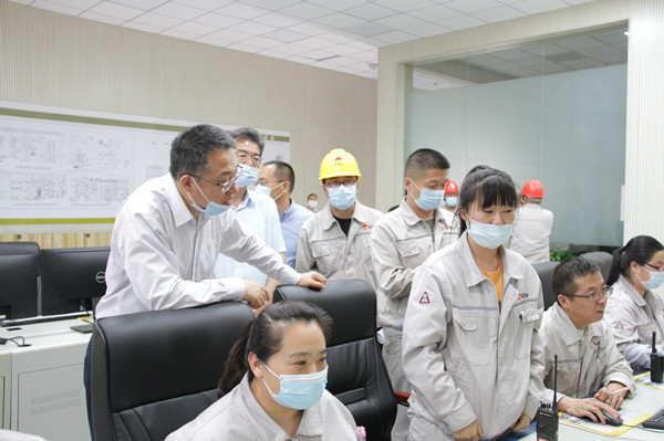 孫曉軍一行到青銅峽片區(qū)中控室了解生產(chǎn)情況,集團公司副總裁、片區(qū)總經(jīng)理張立軍對片區(qū)生產(chǎn)經(jīng)營情況進行了詳細(xì)匯報。孫曉軍對青銅峽片區(qū)生產(chǎn)系統(tǒng)保持穩(wěn)定運行給予肯定。